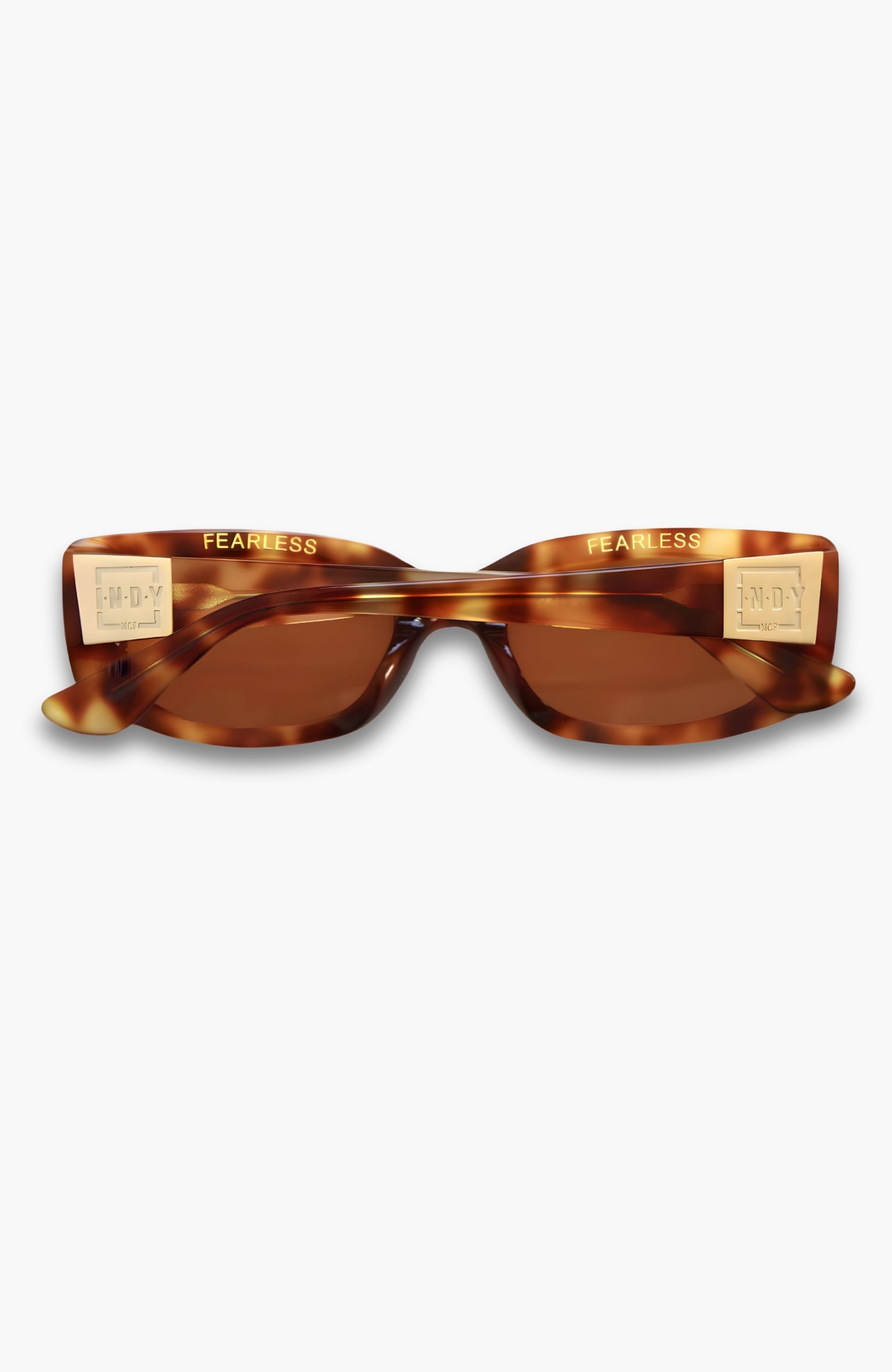 Never seen sunglasses with a secret, inspiring quote? Us too. That's why we created the Delancey rectangular sunglasses in black to motivate you to live fearlessly. You'll find the word "Fearless" engraved in a metallic gold inside the frame, fitting all face shapes and genders. The wording is for your eyes only.