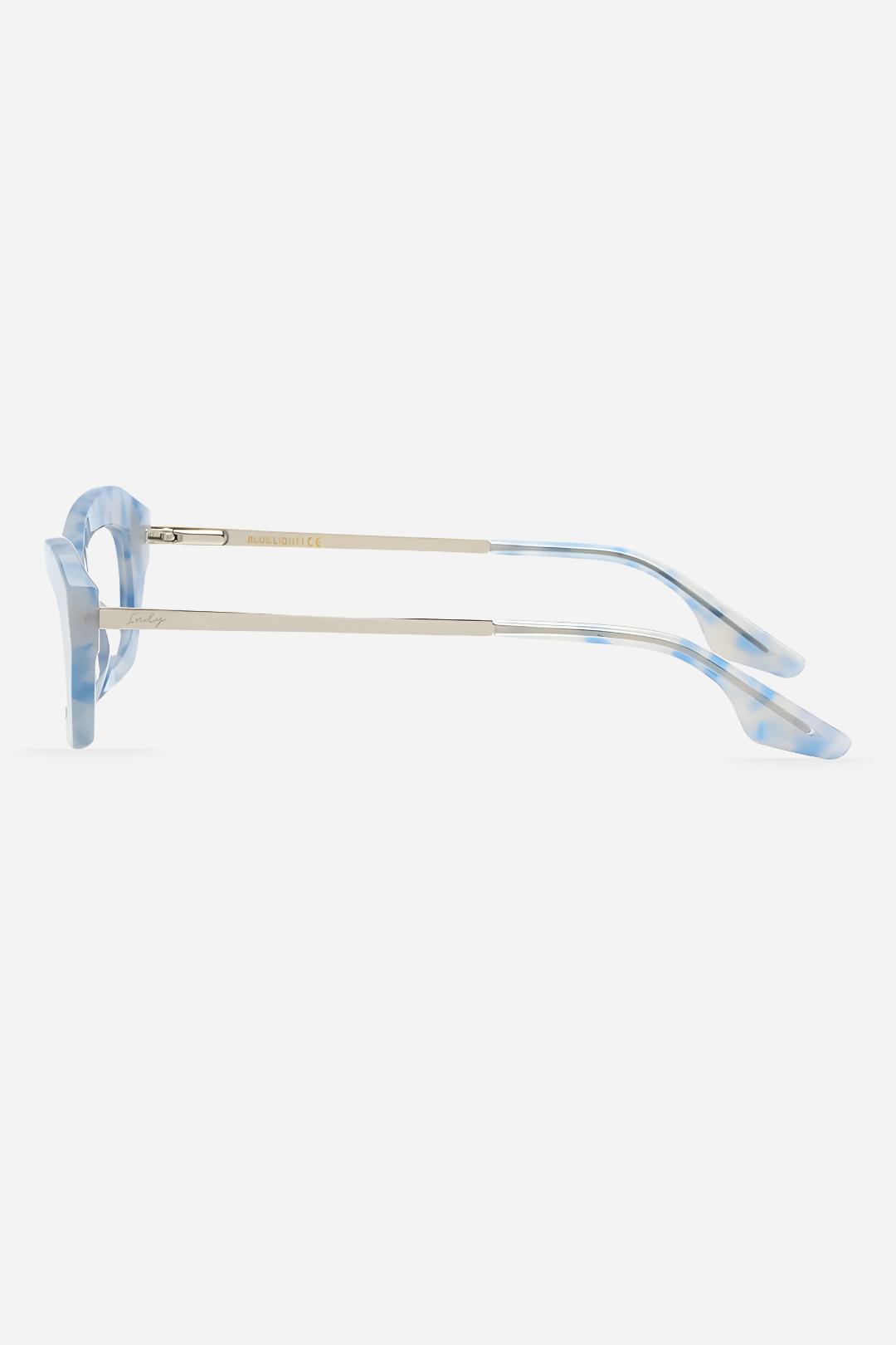 Designed with daydreamers in mind, this timeless shape flaunts a beautiful blue and white cloud pattern and reflective silver "Head In The Clouds" wording that shines in certain lighting for an even dreamier effect. These are perfect for all face shapes.
