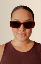 Notre nouvelle monture rectangulaire Palm se décline dans un brun riche et ensoleillé, inspiré de l'huile de bronzage foncée emblématique de la marque. Elle est dotée de verres polarisants pour une meilleure clarté et d'un design élégant et intemporel qui convient à toutes les formes de visage. Parfaites pour toutes les ambiances ensoleillées.